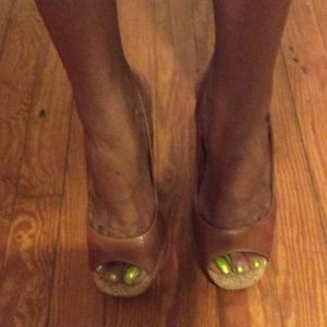 Bronze Leather Platform Slingback with 5 1/2 inch cork heel.