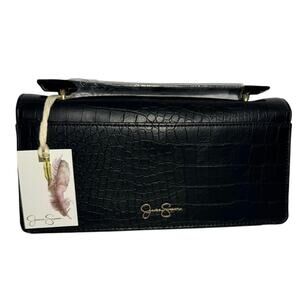 New with tags and in plastic! Jessica Simpson Brooke Clutch, Stylish Shoulder Bag With Chain Strap & Gold Accents in the color Meteorite Croco (Black).