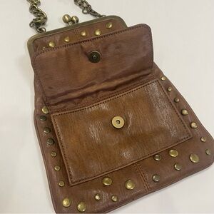 Jessica Simpson Brown Studded Leather Messenger crossbody Bag. Lining picture