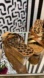 Chic wedges with brown and gold straps. Leopard print insole adds flair. Perfect for stylish outings.