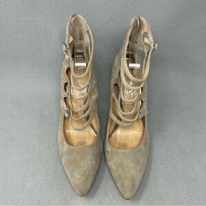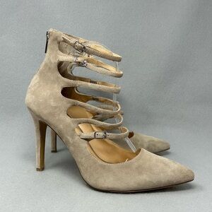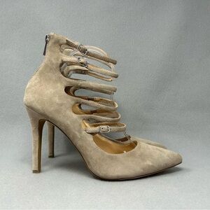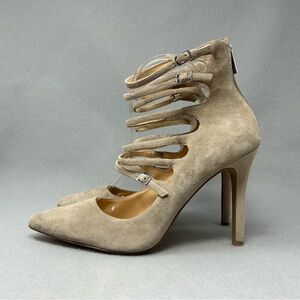 Jessica Simpson CYNDEE Women's Multi Strap Tan Suede High Heel Shoes 10M.