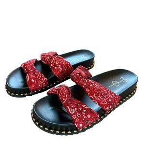Jessica Simpson Caralyna Red Muse Rhinestone Slide Sandals Womens Size 7 NEW