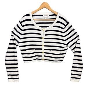 Jessica Simpson Cardigan Nautical Stripe Cropped White Blue Gold Buttons Size XL