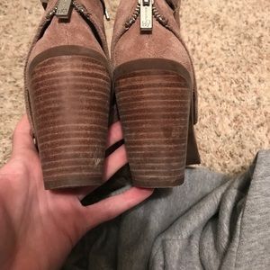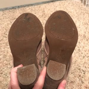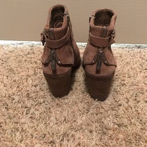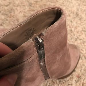 Jessica Simpson Classley ankle bootie with silver zipper detail. I wore these once to a wedding and haven’t touched them since. Size 5.5, some wear to the toe, pictures shown. Some discoloration on the inside of the left boot at top of zipper from jeans rubbing. Make me an offer!