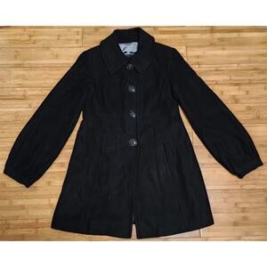 Jessica Simpson Coat Womens Large Black Wool Blend Belted Flare Peacoat Jacket