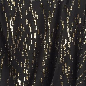 Jessica Simpson black and gold cocktail dress. Very flattering dress with cold shoulder sleeves, cinched waist with tie belt, and perfect amount of sparkle. Excellent condition. Only worn twice.