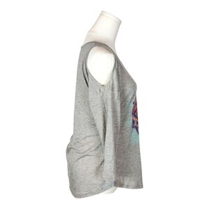 Jessica Simpson Cold Shoulder Graphic Tee Mandala Print Gray Top Size Small