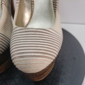 Sand seaside-stripe Pumps textured upper material with detailed wooden platform