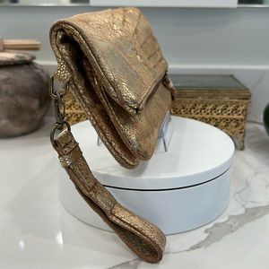 Jessica Simpson Coppery/Golden/Bronze Metallic Snakeskin Print Wristlet, VGUC.