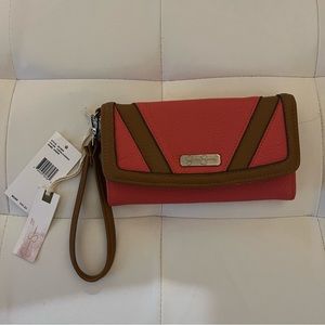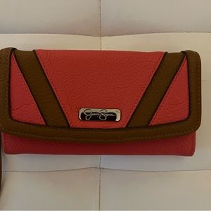 Has the look of pebbled leather but no tag that says leather so maybe PVC?
