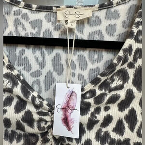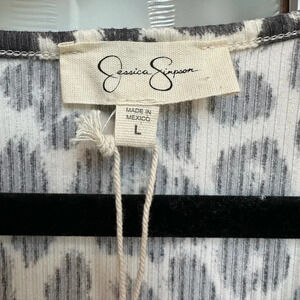 Jessica Simpson |Cream & Black Leopard Print Cut Out Short Sleeve Dress Sz L NWT