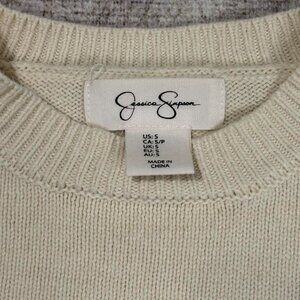 Jessica Simpson Cream Black Varsity Sweater Preppy Small