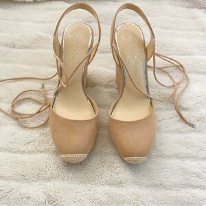 Jessica Simpson Cream Lace-Up Platform Wedge Espadrilles New Size 10