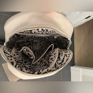 Small cream leather backpack inside pockets. Tiny spot on the front.