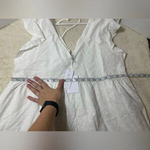 Chic mini dress with ruffle sleeves. Features a stylish tie-back. Ideal for versatile occasions.