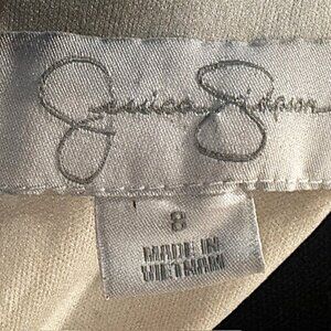 Introducing the stunning Jessica Simpson cream sleeveless dress, featuring exquisite suede trim along the sleeves. This elegantly designed piece boasts a stylish flared silhouette, creating a graceful movement perfect for twirling and dancing the night away. Its luxurious fabric and refined details make it an ideal choice for any glamorous evening out. Pockets!