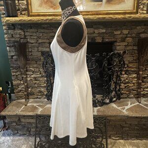 Jessica Simpson Cream Sleeveless Flared Dress w/Pockets and Suede trim Sleeves