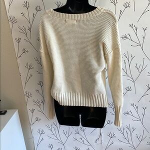 Cozy knit sweater. Ribbed cuffs and hem. Perfect for layering.