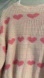 Charming sweater with pink heart design. Soft and cozy knit. Ideal for casual wear.