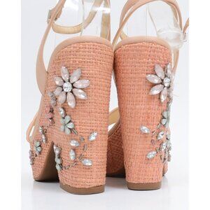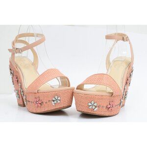 Jessica Simpson Cressia Raffia Rhinestone Flowers Platform Sandals Size 8.5