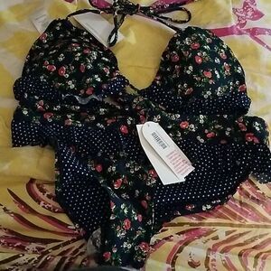 Jessica Simpson Dark Blue Floral Bikini Set Size M/L Two Piece Swimsuit Women’s