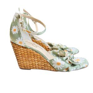Jessica Simpson Delirah 8.5 Floral Wedge Espadrille Rattan Daisy Picnic Woven Heel Bow
