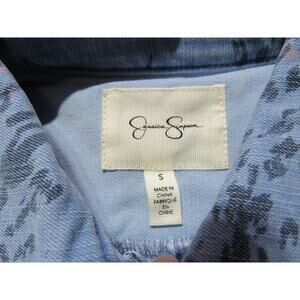 This Jessica Simpson denim jacket in women's size small is a stylish addition to any wardrobe. Made from a comfortable cotton blend with a denim fabric type, this basic jacket features a classic button closure and comes in a versatile blue color. The Jessica Simpson brand ensures quality and style, making this jacket a must-have for any fashion-forward woman.