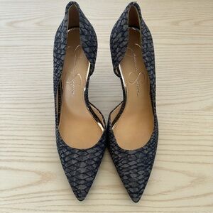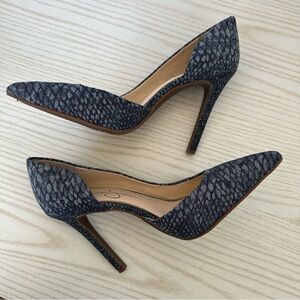 Jessica Simpson Office Siren D’orsey Blue Denim Snake Print Closed Pointed Toe Slip In Stiletto Claudette Pumps Size 7