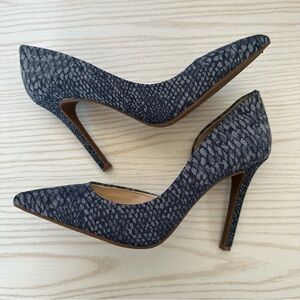 Jessica Simpson D’orsey Blue Denim Snake Print Stiletto Claudette Heels Size 7