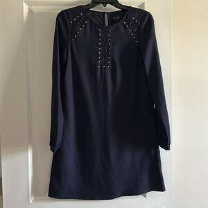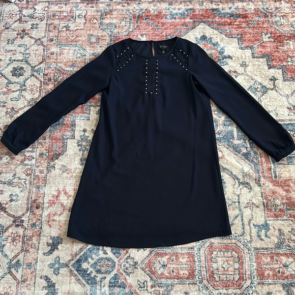 Navy long sleeve dress by Jessica Simpson. Fully lined. Pull on. Lace detailing at top
