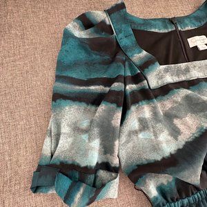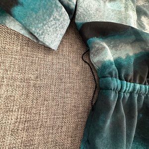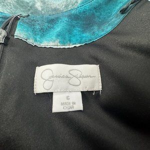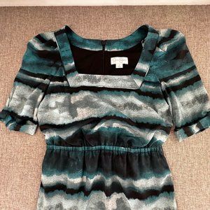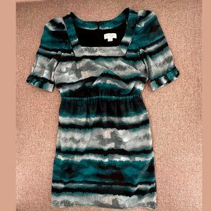 Jessica Simpson Dress Green Black Gray Square Neck Elastic Waist Lined Polyester