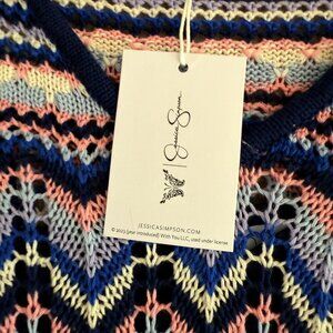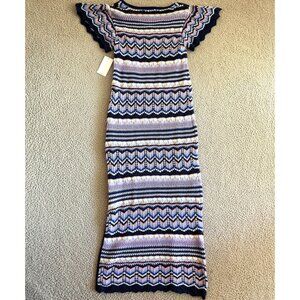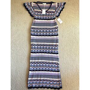Jessica Simpson Dress Womens Small Multicolor Knit Chevron Maxi Flutter Sleeve NWT