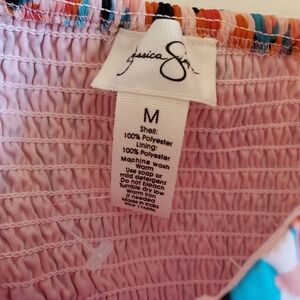 This Jessica Simpson dress is a must-have for any occasion. With its multicolor pattern, sweet heart neckline this fit and flare mini dress is perfect for summer and spring and vacation. The dress features short puff sleeves and a smocked bodice, made of polyester material and chiffon fabric type, which gives it a unique and designer look.