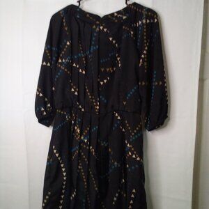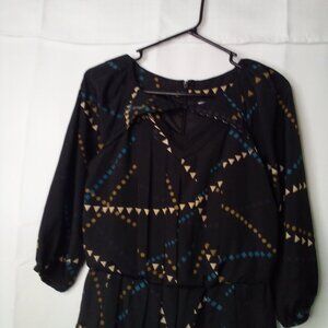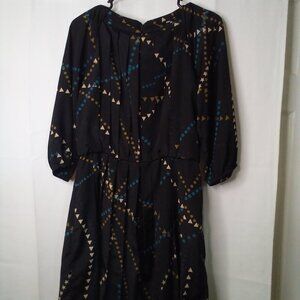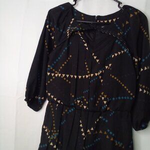 Jessica Simpson Dress Women 6 Half Sleeve Pleats Pattern Black Blue