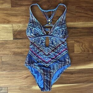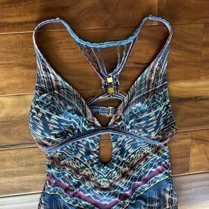 Jessica Simpson Dusty Road Halter Keyhole One Piece Swimsuit size Small
