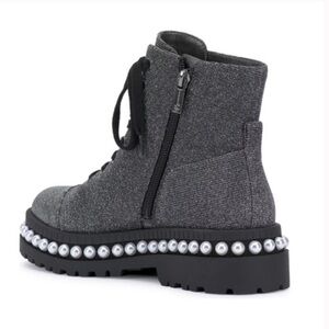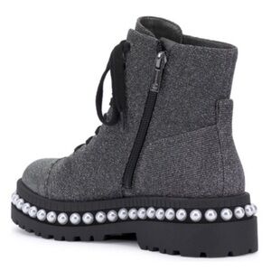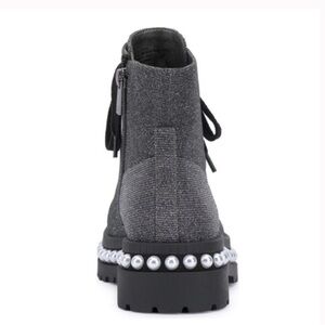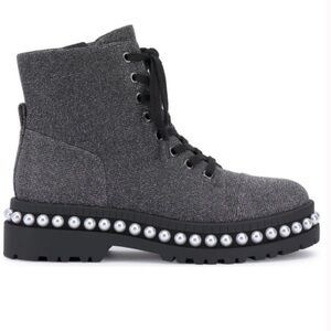 glamourous pearl adorned combat boots for women