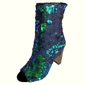 Jessica Simpson Elara Sequin Mermaid Blue Green High Heel Peep Toe Ankle Boot 6M
