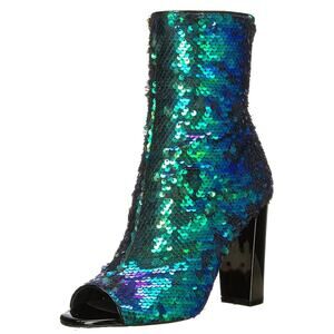 Jessica Simpson Elara Sequin Mermaid Blue Green High Heel Peep Toe Ankle Boot 6M