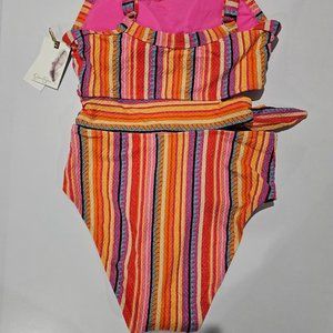 A one piece with a bare waist? You get it with the Escape to Pacific swimsuit by Jessica Simpson.