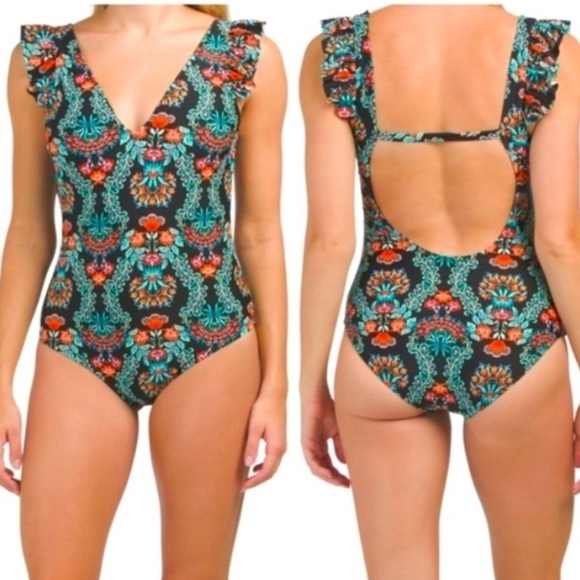 Jessica Simpson Estilo Floral Ruffle One-Piece Swimsuit