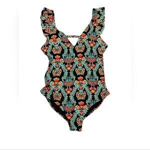Jessica Simpson Estilo Black Floral Ruffle One-Piece Swimsuit