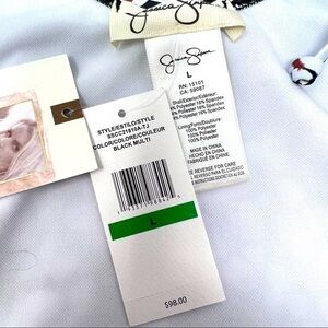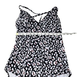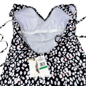 Jessica Simpson Estilo Black White Spotted Print Halter Neck One Piece Swimsuit Size L NWT