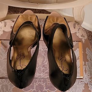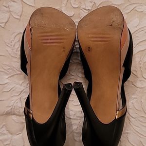 Jessica Simpson Evannan Black & Gold Peep Toe Heels