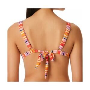 Jessica Simpson FEMME STRIPE Escape to Pacific Retro Pink Bikini Swim Top Medium