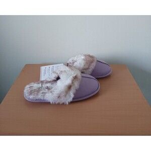 Jessica Simpson Womens Faux Fur Slippers Lilac Memory Foam Comfy