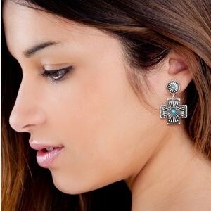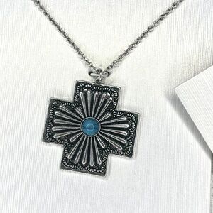 Jessica Simpson Faux Turquoise Stone Cross Necklace and Earrings Set