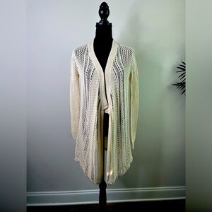 Jessica Simpson Feminine White Open Front Knit Long Romantic Cardigan sz S