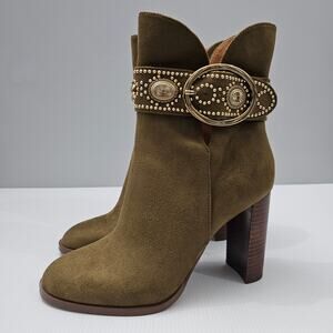 Jessica Simpson Finova Ankle Bootie Womens 8 Olive Green Buckle Western Heel