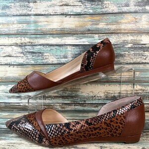 Jessica Simpson Flats Womens 7.5M Crissile Brown Animal Print Pointed Toe Shoes