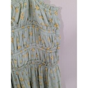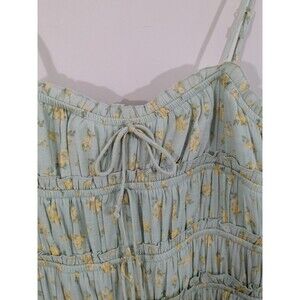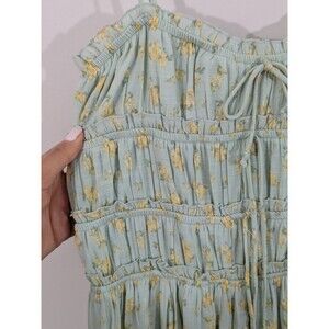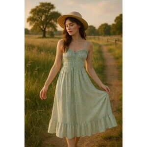 The Jessica Simpson Floral Boho Cottagecore Smocked Bodice Ruffle Hem Midi Dress in size L is a stylish and versatile piece perfect for the summer and spring seasons. This sleeveless dress features a square neckline, strappy sleeves, and a ruffle accent for added charm. The dress is made from a mix of polyester and rayon, providing a comfortable and breathable feel. With its fit and flare silhouette and A-line design, this dress is ideal for casual outings, parties, or even a picnic in the garden, embodying a bohemian and romantic aesthetic.